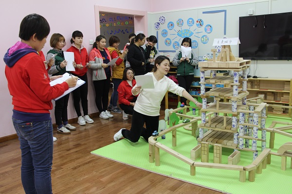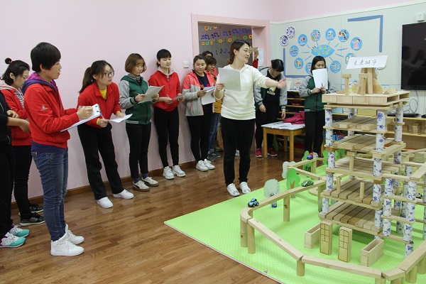 教师的指导对幼儿积木建构起着重要的引导作用。本次积木建构大赛,教师们在观摩中交流经验,在合作中团结协作,不仅提高了自身专业素养和专业技能,同时对教师有效组织和开展幼儿建构游戏起到了积极推动作用。